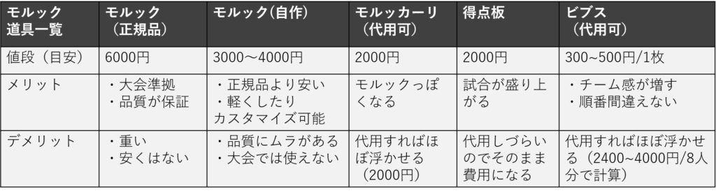 一番高いパターンだとモルック(正規品)+モルッカーリ+得点板+8人全員分のビブス≒13000円