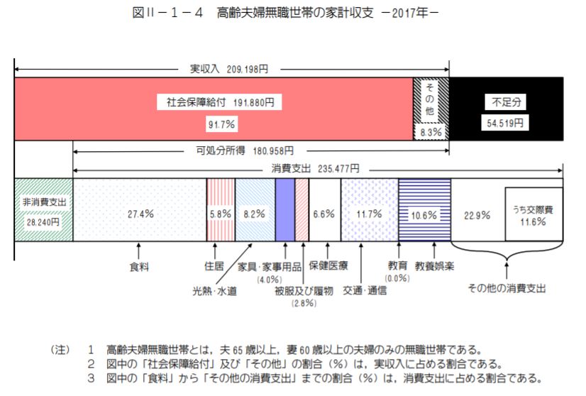 内容は高齢夫婦無職世帯の家計収支、つまり退職後無職、かつ公的年金のみで生活する世帯の事です。