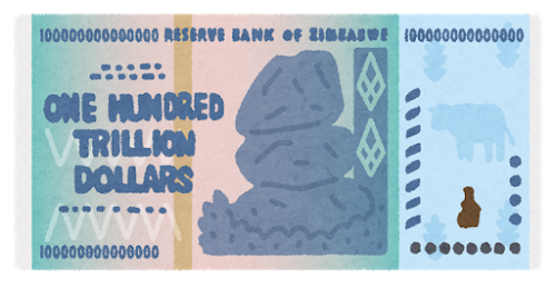 余談ですが、もしもインフレが行き過ぎると『ハイパーインフレ』という状態になって札束がリアルに紙切れになるという現象も起こり得ます。有名な話ですとジンバブエドルの『ハイパーインフレ』がありますので興味があれば調べてみてください。