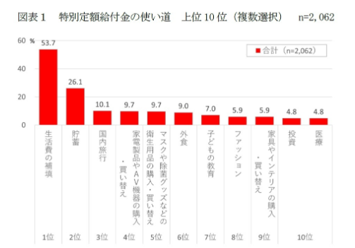 2020年に日本ではコロナ対策として10万円の特別定額給付金が実施されましたがその時の使い道については以下の通りです。(参照:ニッセイ基礎研究所)